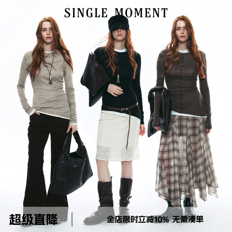 SINGLE MOMENT 25AW法式莱赛尔羊毛混纺叠穿长袖T恤打底衫上衣女