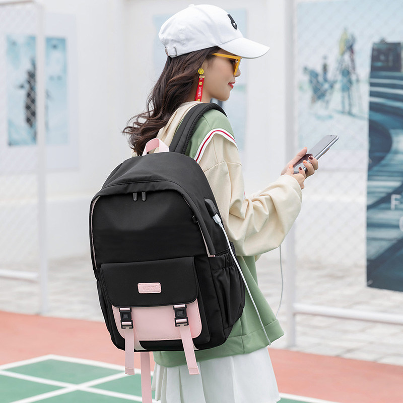 双肩包女大学生韩版撞色学院风背包简约百搭大容量初中高中生书包