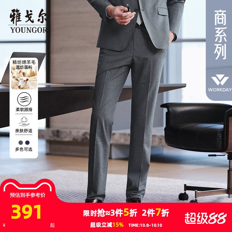 雅戈尔西裤新款官方商务时尚羊毛藏青正装上班长西服裤子男4376