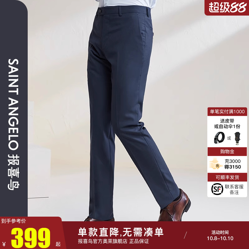 报喜鸟2025春季新款男商务休闲羊毛垂感西裤修身正装传统裤西装裤