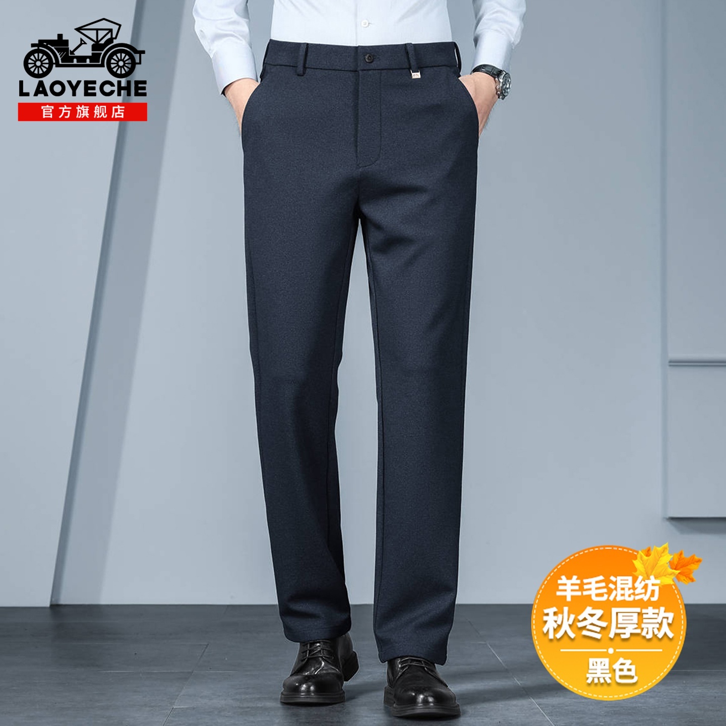 老爷车秋冬新款羊毛西裤男加厚直筒商务休闲抗皱免烫中年西装裤子