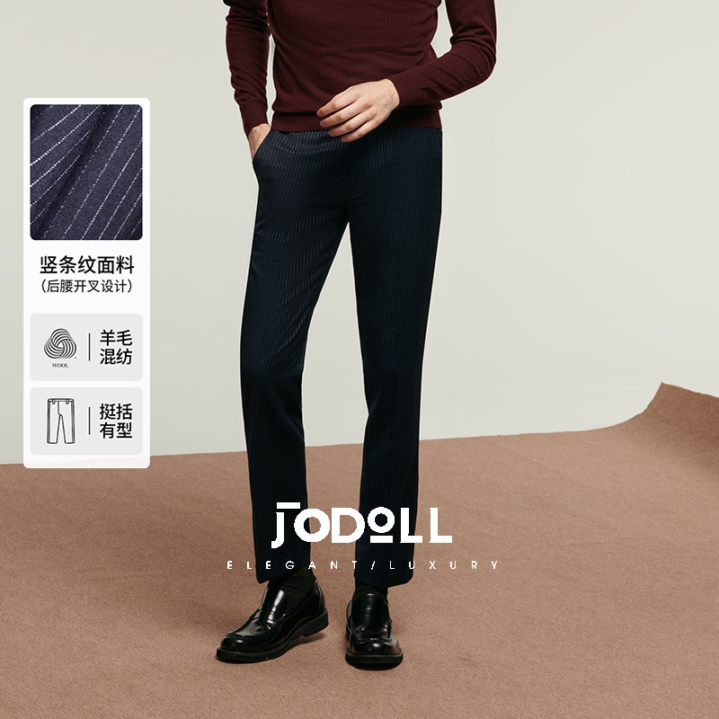 JODOLL乔顿羊毛西装裤男商务休闲上班直筒长裤百搭修身竖条纹西裤