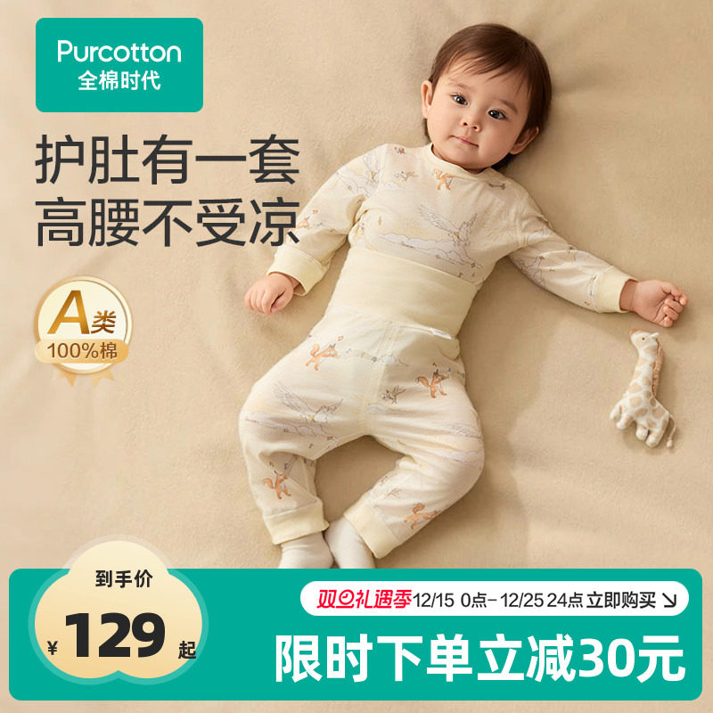 全棉时代儿童家居服婴幼儿睡衣套装保暖新款男女宝宝高腰长袖衣服