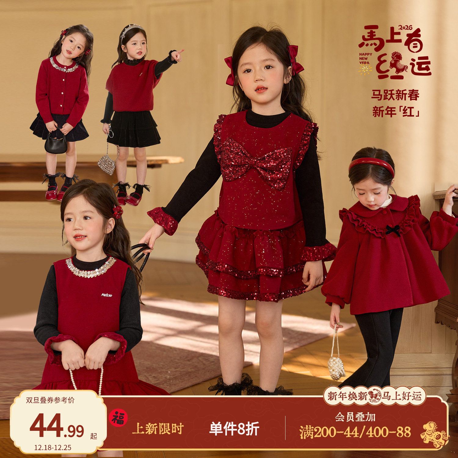 巴拉巴拉童装儿童套装女童拜年服2025新款冬装新中式两件套红色潮