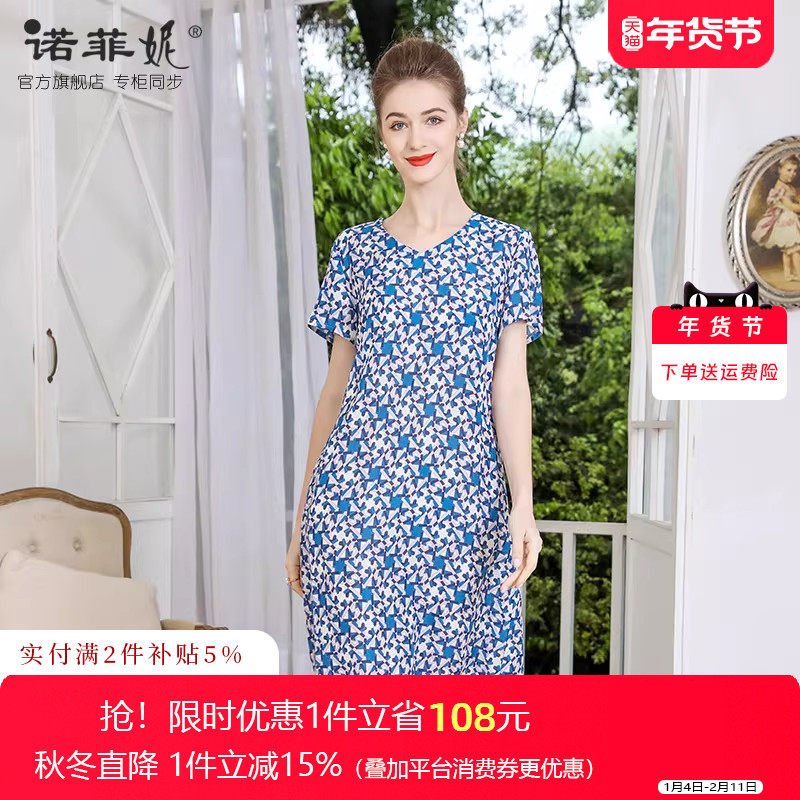 中年女装2025夏装新款桑蚕丝印花薄款连衣裙通勤妈妈款H版中裙女