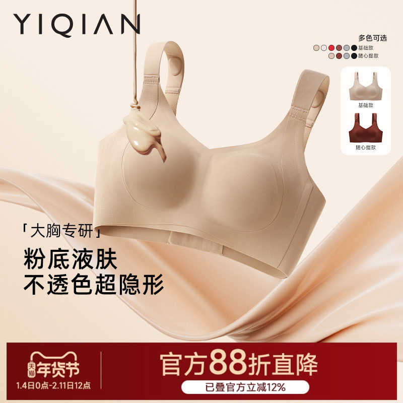 怡倩【粉底液软支撑内衣】大胸显小无痕隐形提拉大码无钢圈文胸女