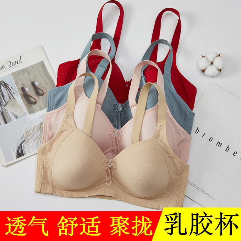 乳胶杯超柔软舒适薄款内衣女士加大码无钢圈文胸聚拢妈妈中年胸罩