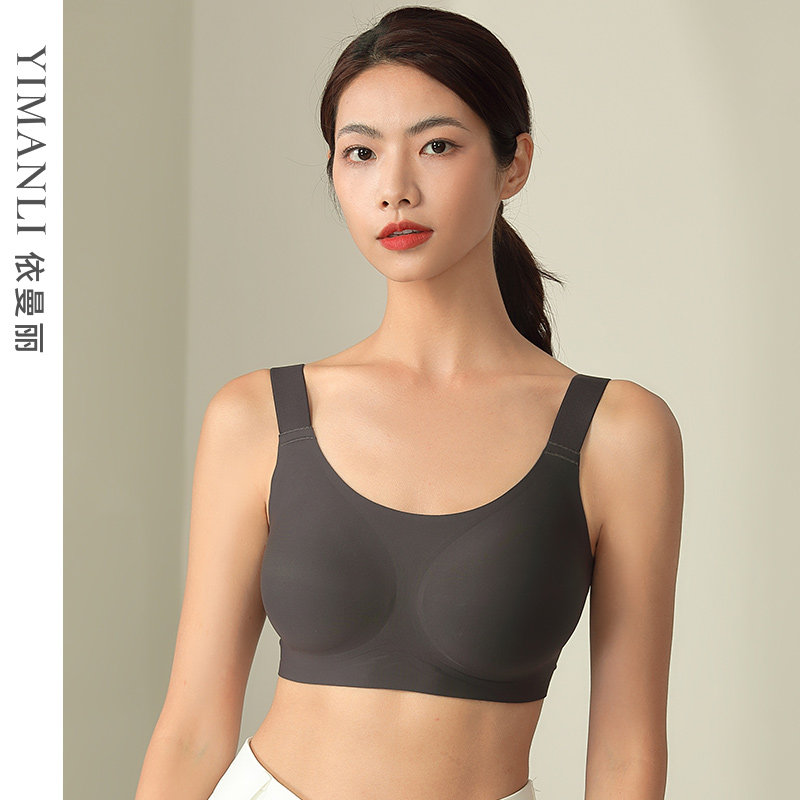 依曼丽大码无钢圈文胸光面无痕运动防走光大胸显小聚拢胸罩内衣女