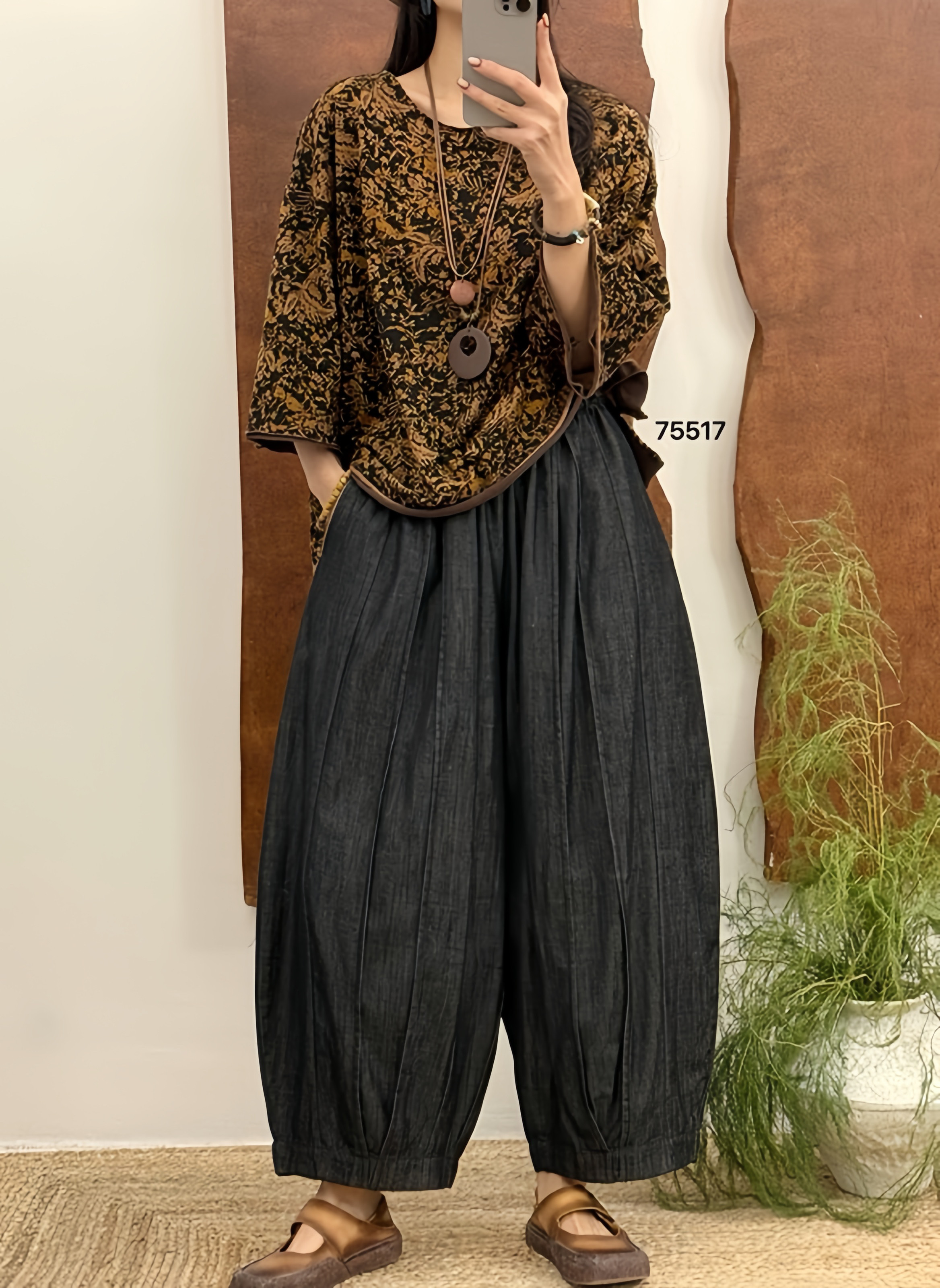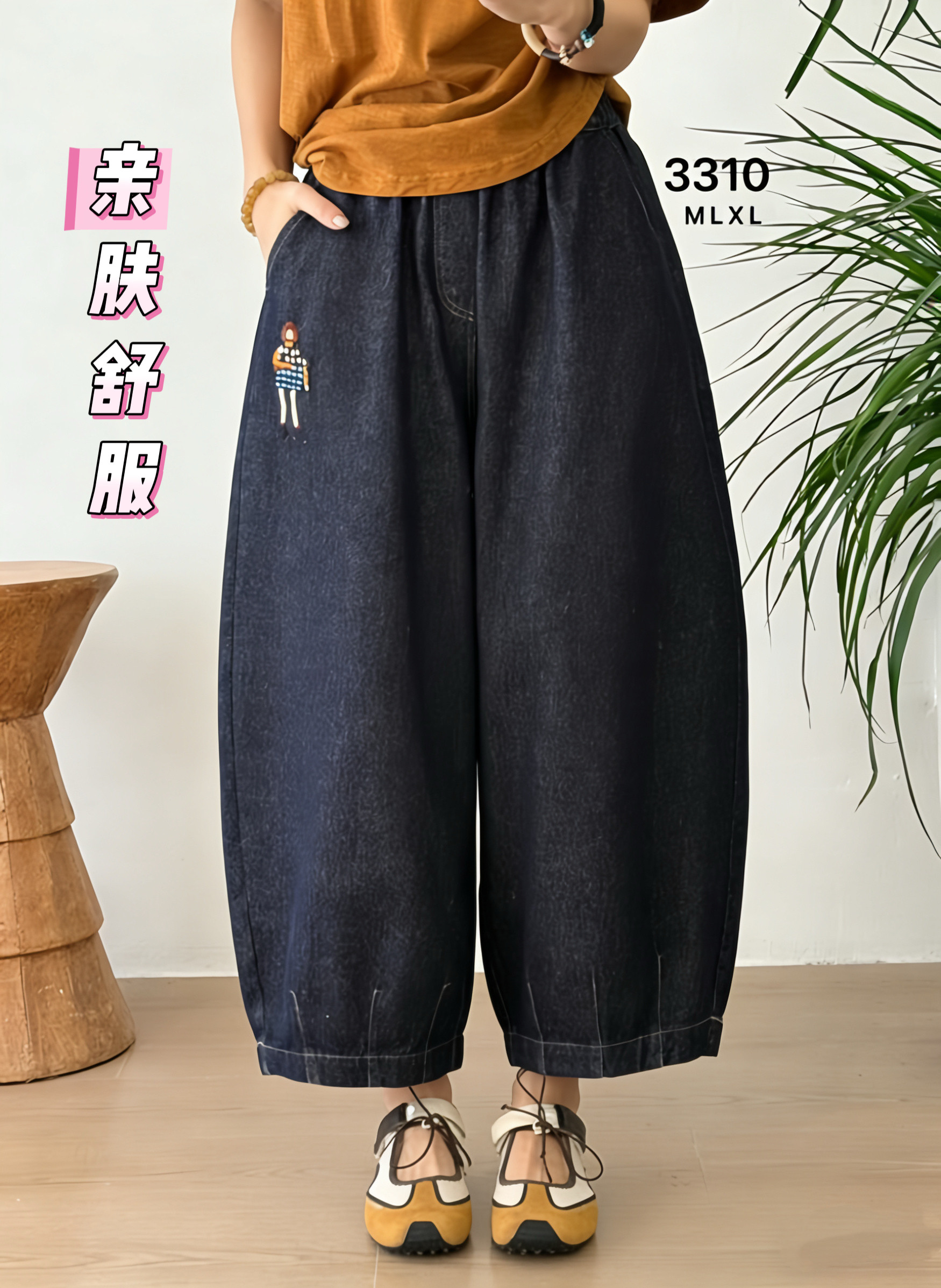 布愫推荐!2026春夏刺绣宽松丹宁纯棉牛仔裤女灯笼气球九分阔腿裤