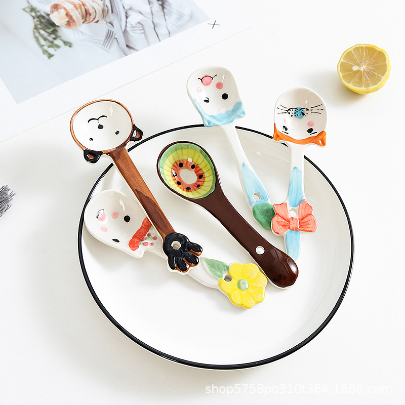 家用日式小号可爱软萌丑图案手工手绘餐具儿童小孩子吃饭陶瓷勺子