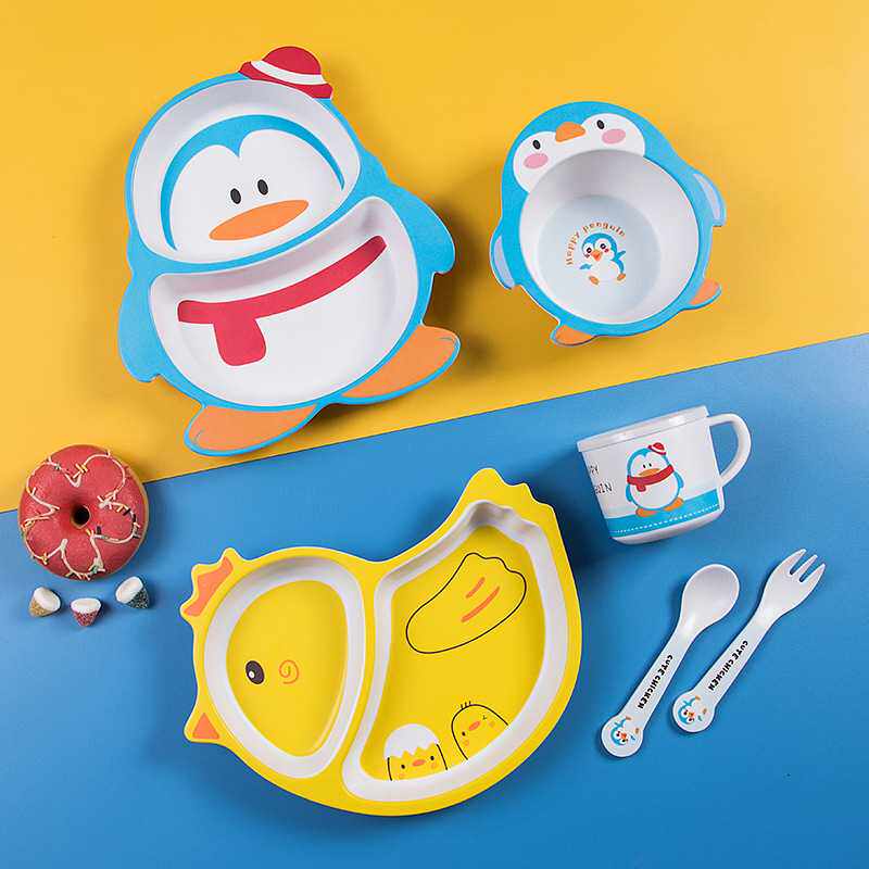 新款直销新款卡通竹纤维儿童餐具套装家用宝宝分格餐盘小孩子辅食