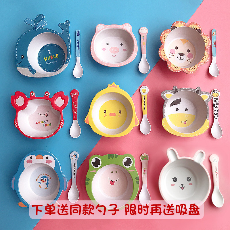 竹纤维餐具儿童碗宝宝辅食餐具家用卡通小孩子专用碗吃饭汤碗勺子