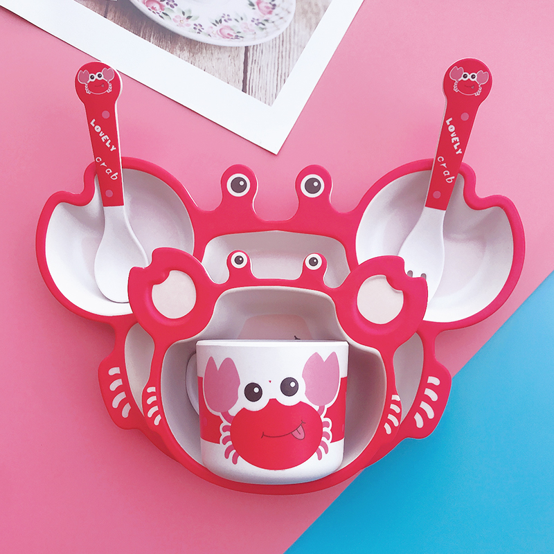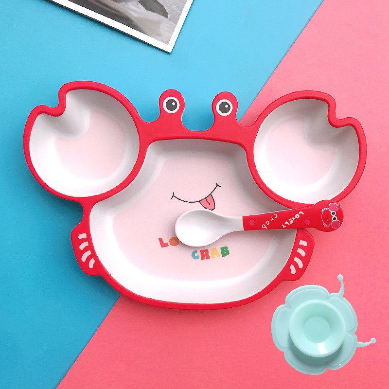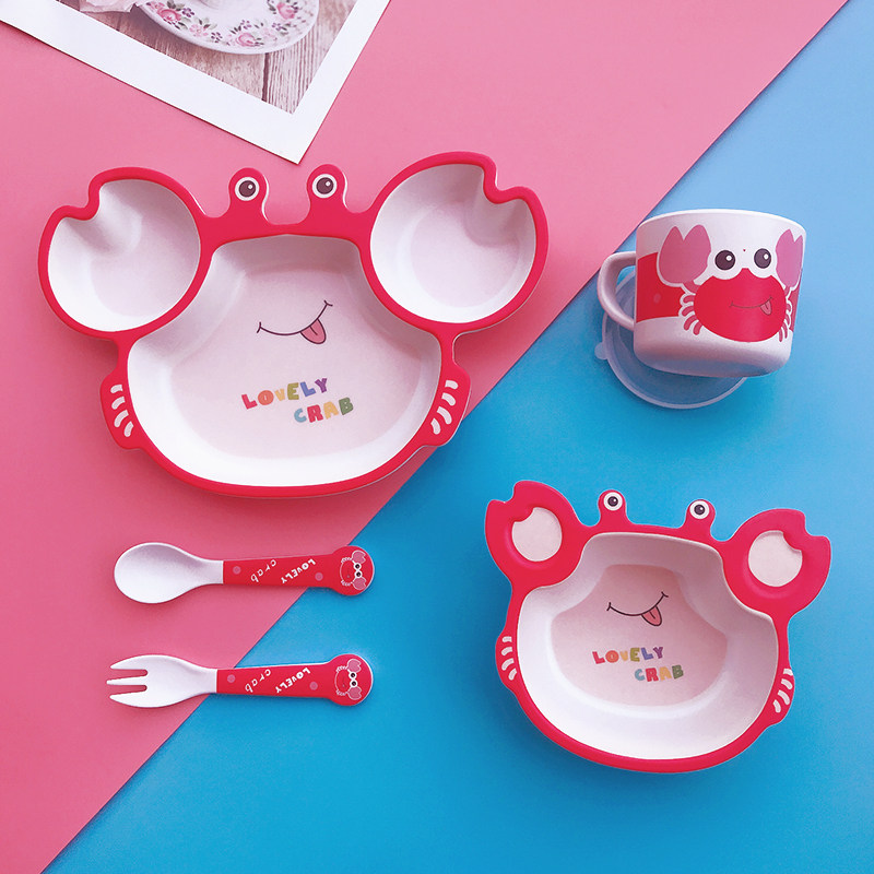 竹纤维儿童餐具套装家用螃蟹卡通宝宝分格餐盘小孩子辅食碗叉勺子