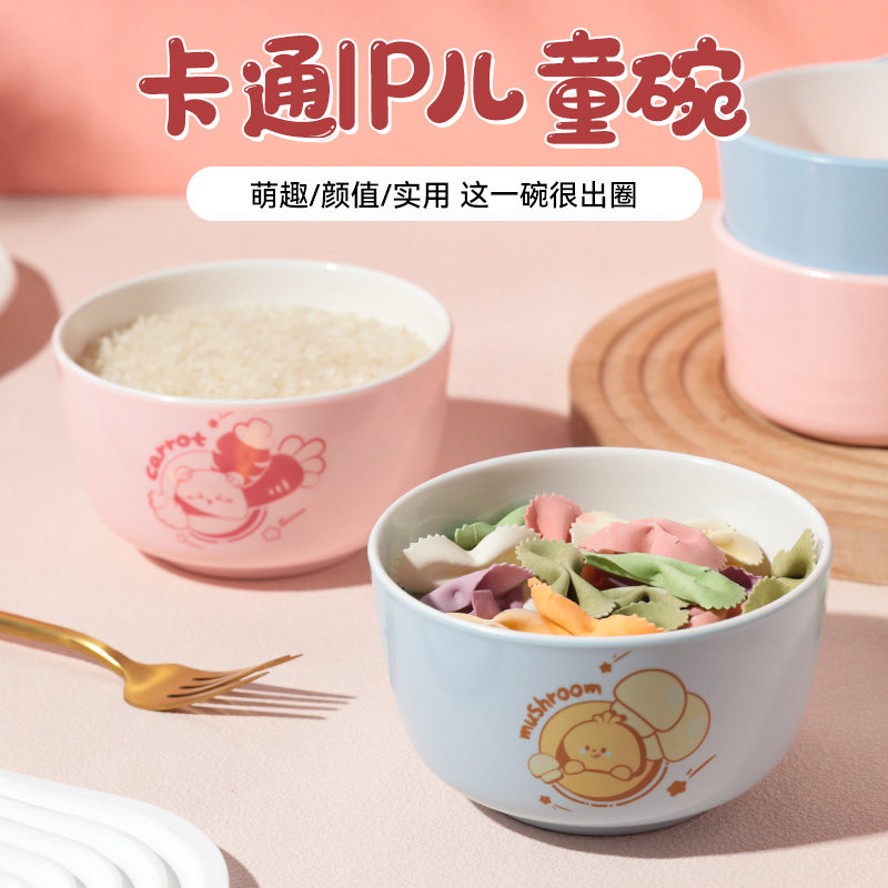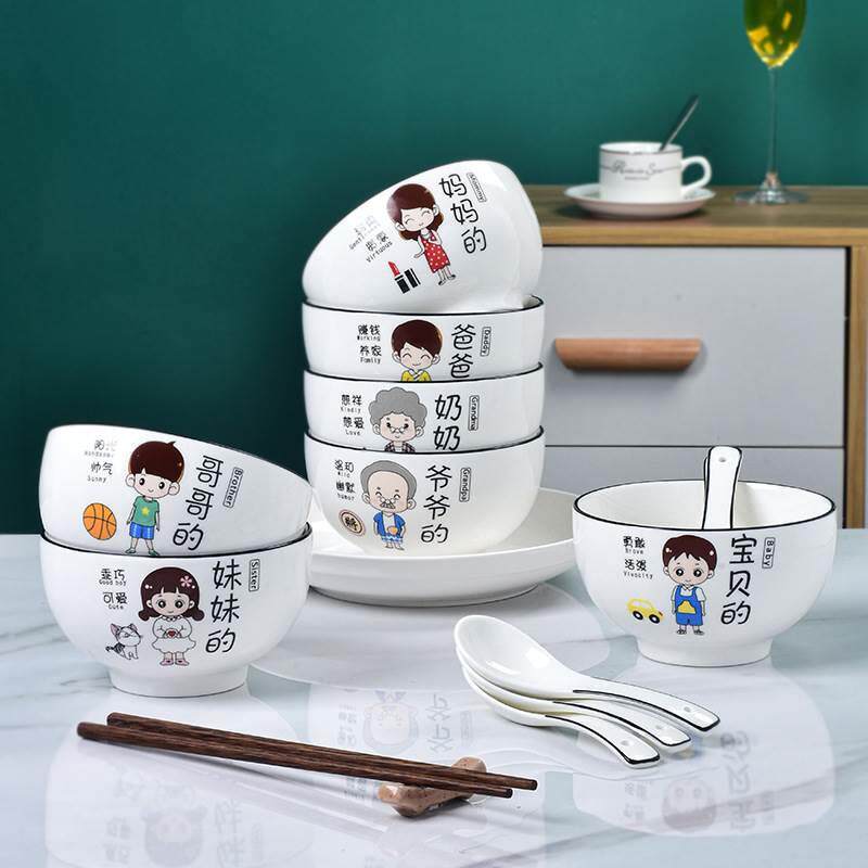 亲子碗勺餐具套装家庭个性一家四口陶瓷碗家用小孩子专用碗吃饭碗