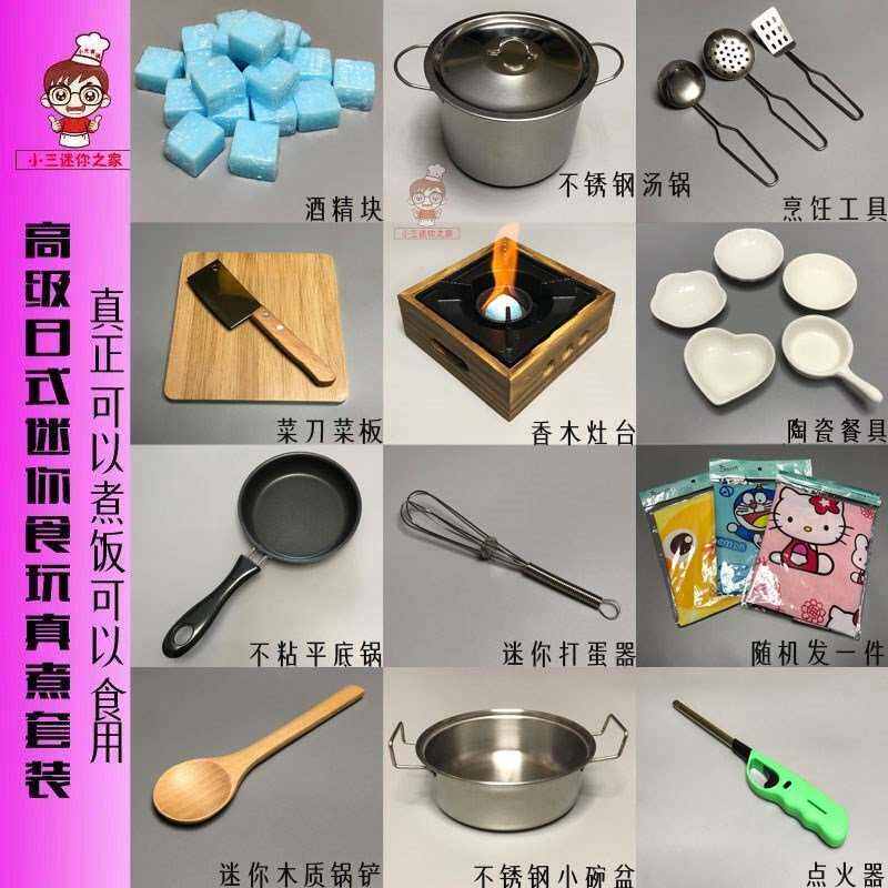 食玩小孩子迷你厨房炉子小房子餐台木桌碗碟柴火火锅煎煮餐具微缩
