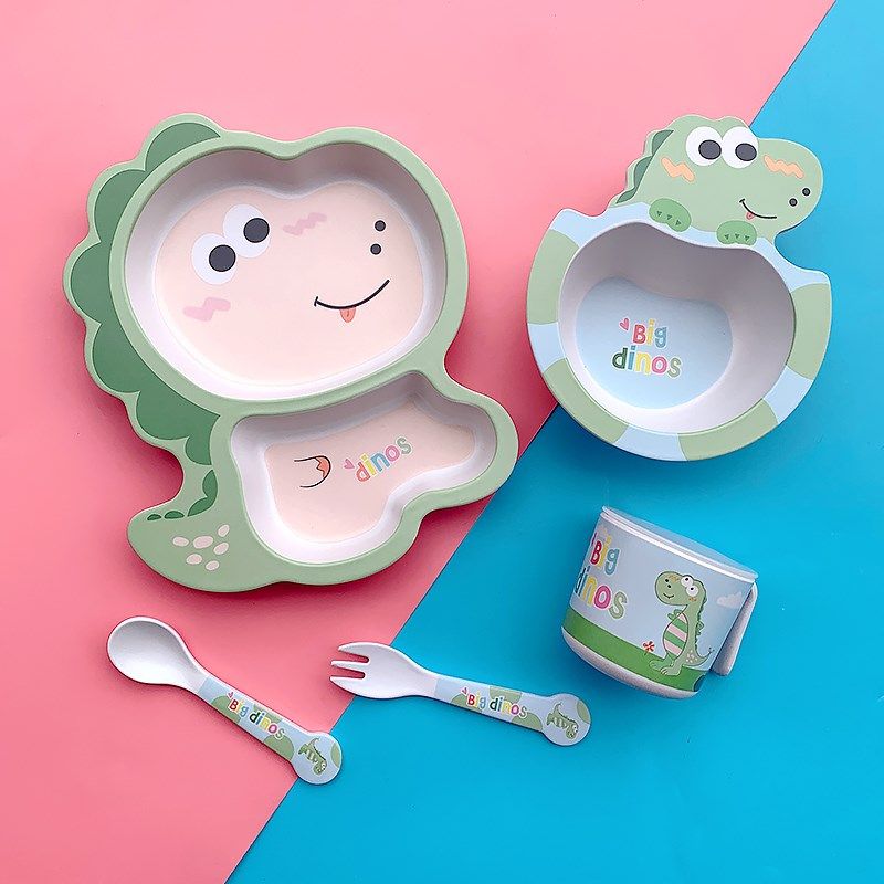 竹纤维儿童可爱卡通分格餐盘恐龙宝宝吃饭碗餐具套装小孩子辅食盘