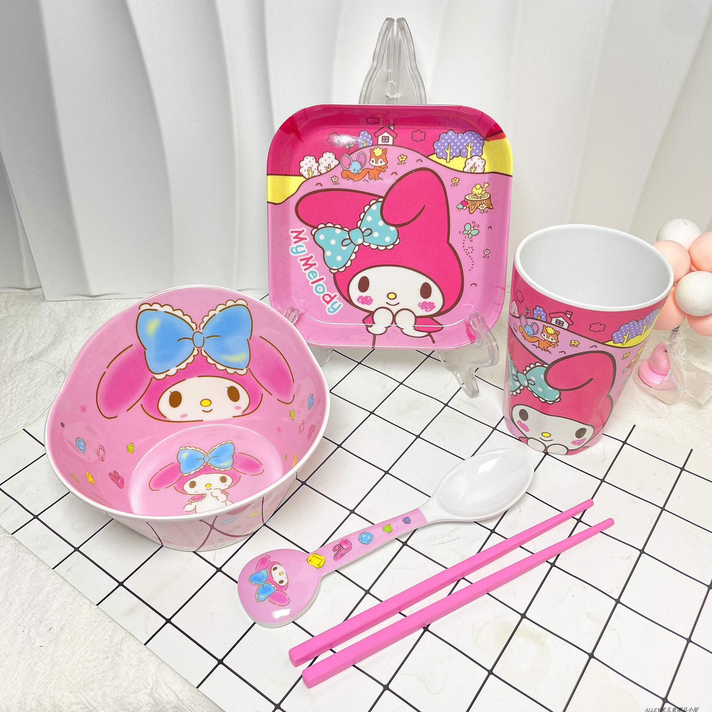 儿童卡通美乐蒂餐具套装耐摔宝宝辅食碗孩子家用分格餐盘水杯筷子