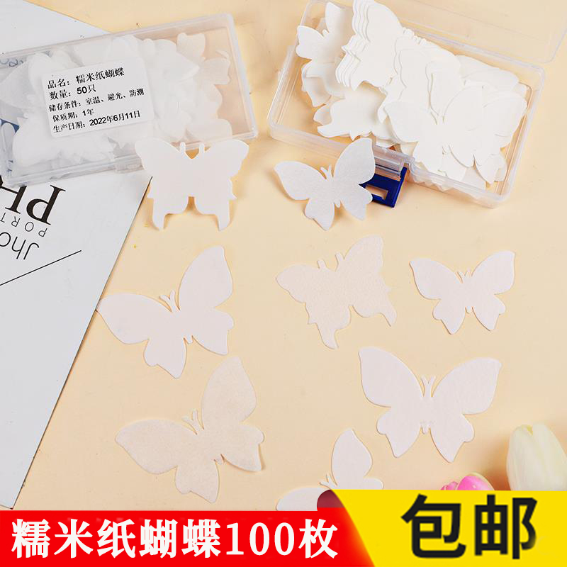 白色威化纸糯米纸蝴蝶50个盒装 DIY烘焙蛋糕点心糕点装饰配件插件