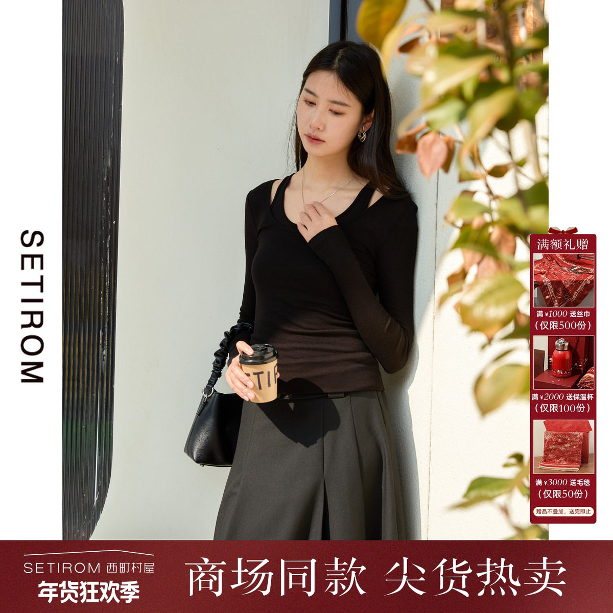 班尼路S&K系列假两件打底衫女秋冬新款修身显瘦亲肤保暖内搭长袖Q