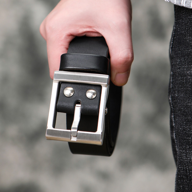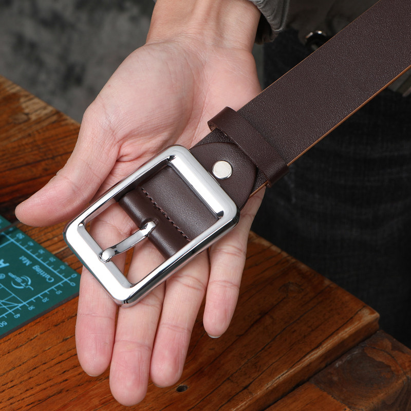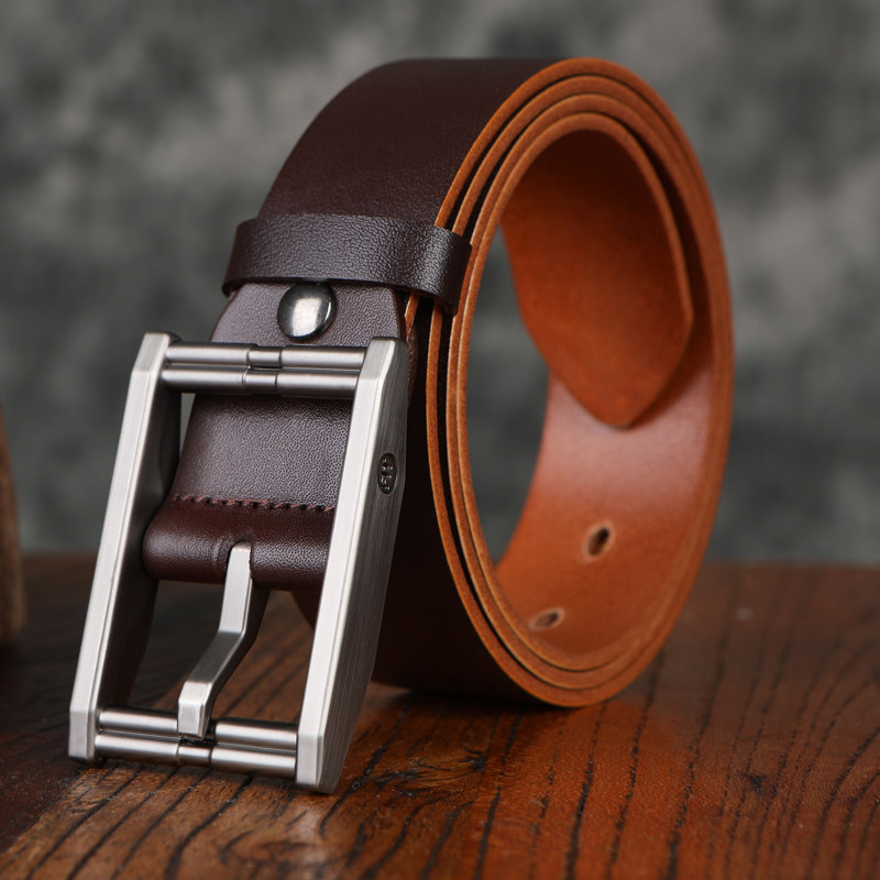新款打孔扣头层牛皮带男士真皮休闲牛仔裤带眼针扣板扣平滑腰带孔