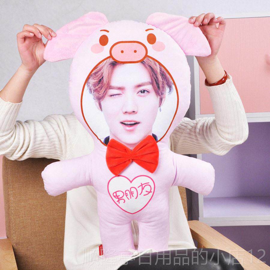 正品图片定制真人头像志抱枕人权形玩偶娃娃龙鹿晗同款仔毛绒公送