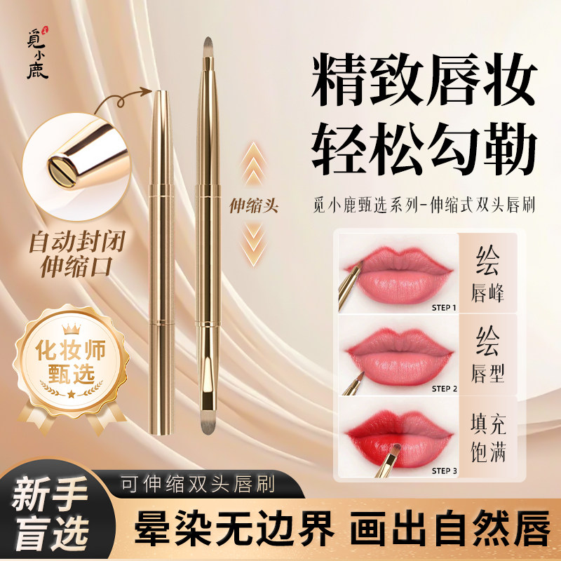 觅小鹿包邮双头唇刷口红刷金属伸缩唇线笔刷遮瑕刷带盖便携化妆刷