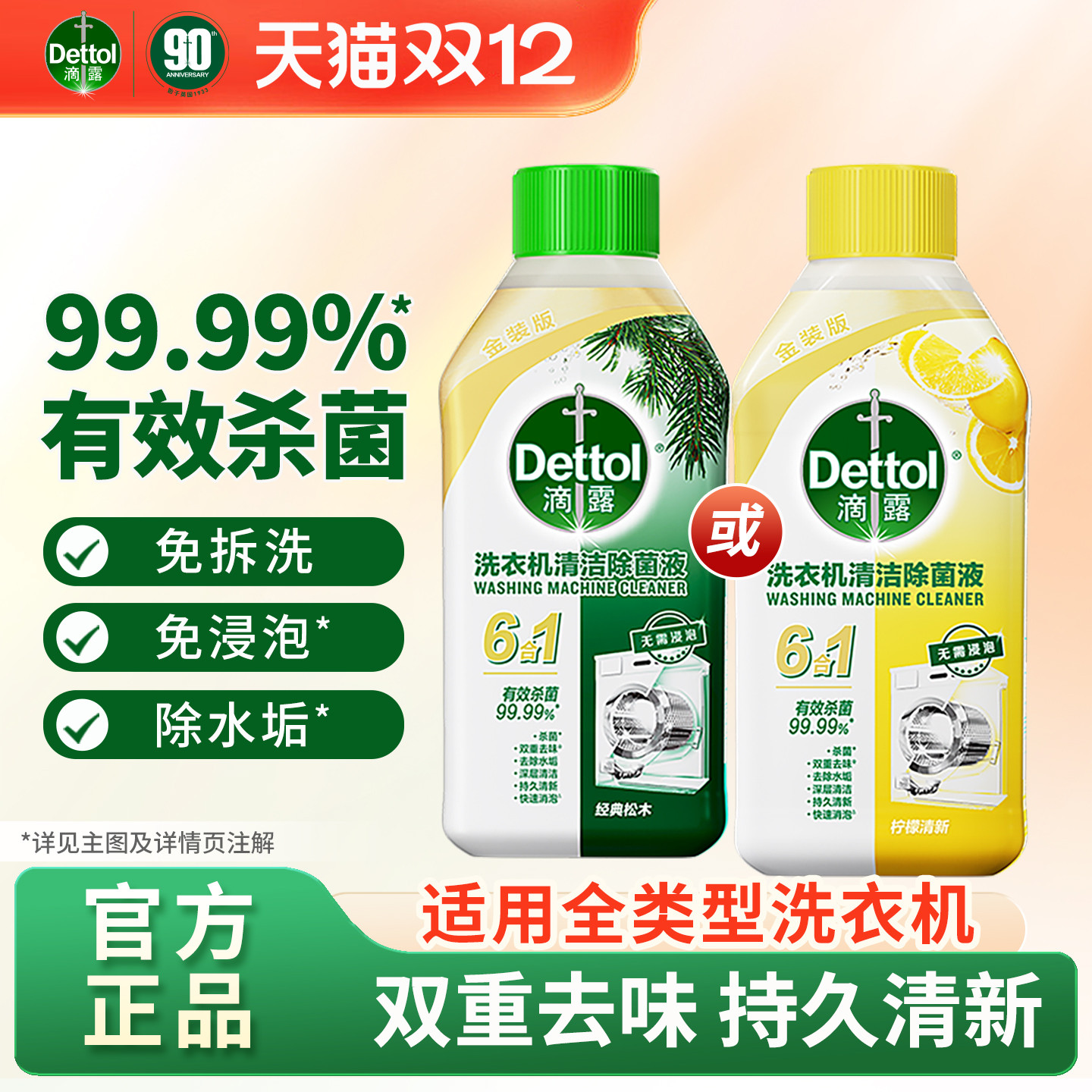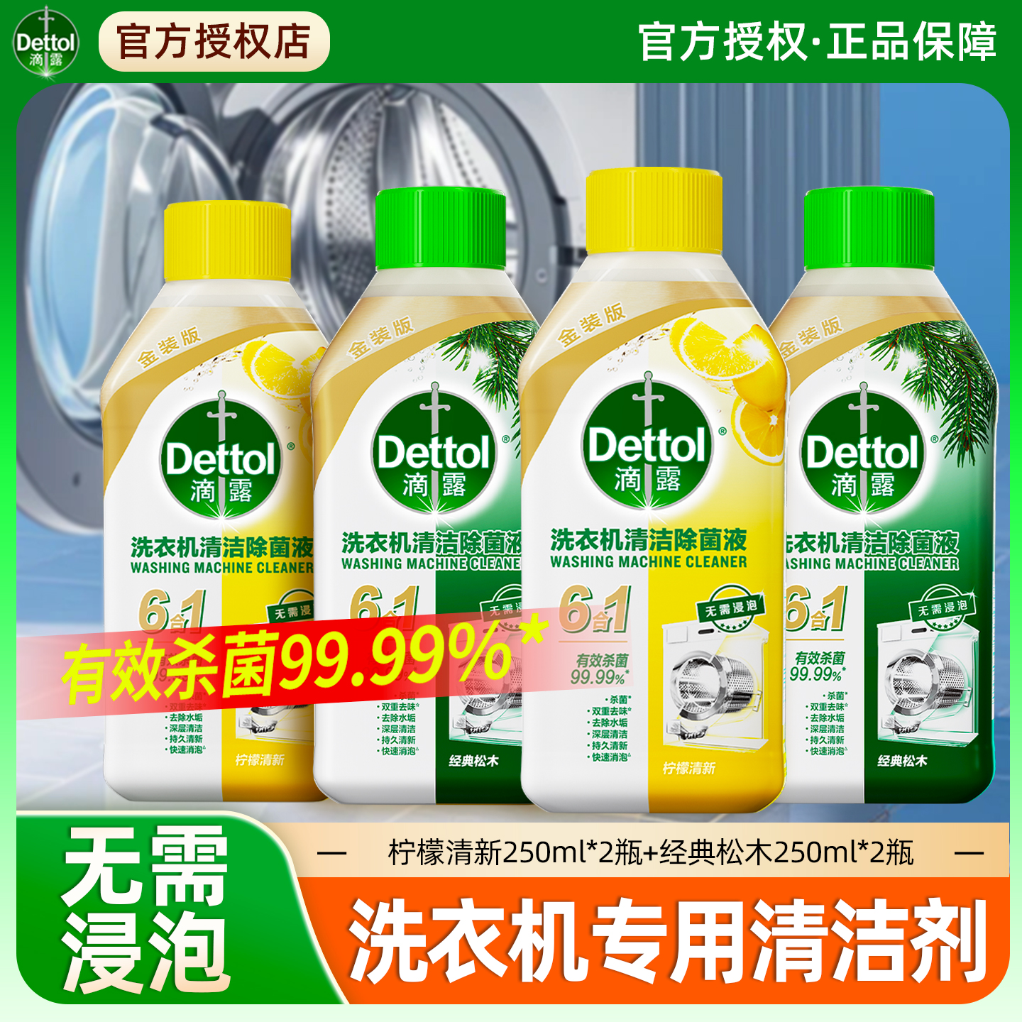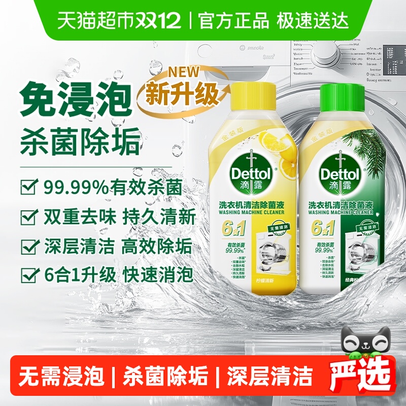 Dettol/滴露洗衣机清洗剂金装2.0升级柠檬/松木等多规格组套除菌