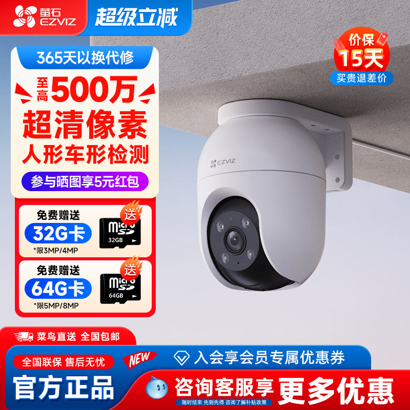 萤石C8C无线全景监控高清摄像家用WiFi手机远程语音对讲海康威视