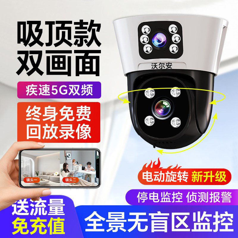 摄像头360度无死角无线家用手机远程4G高清室外三画面监控器摄影