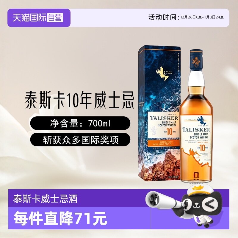 【自营】泰斯卡10年单一麦芽苏格兰威士忌酒700ml/瓶英国进口洋酒
