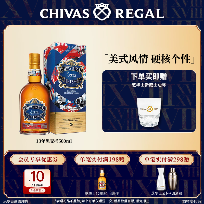 【官方旗舰】芝华士领潮风味系列13年黑麦桶500ml苏格兰威士忌酒