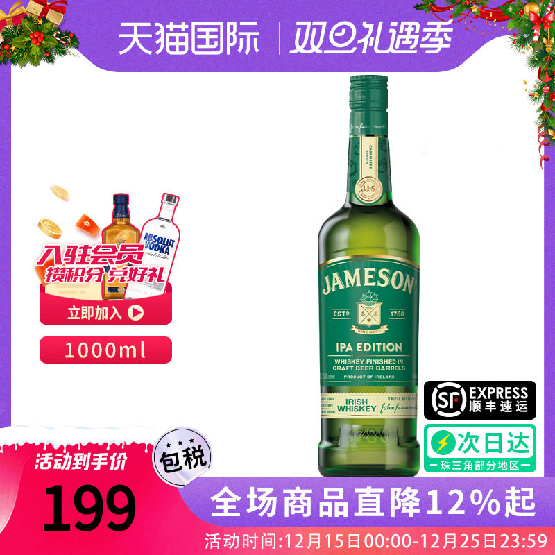 尊美醇(Jameson)IPA精酿版1000ml爱尔兰调和型威士忌酒原瓶进口