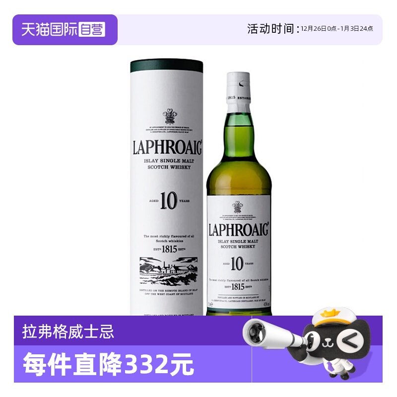 【自营】Laphroaig利富/拉弗格10年苏格兰单一麦芽威士忌酒700ml