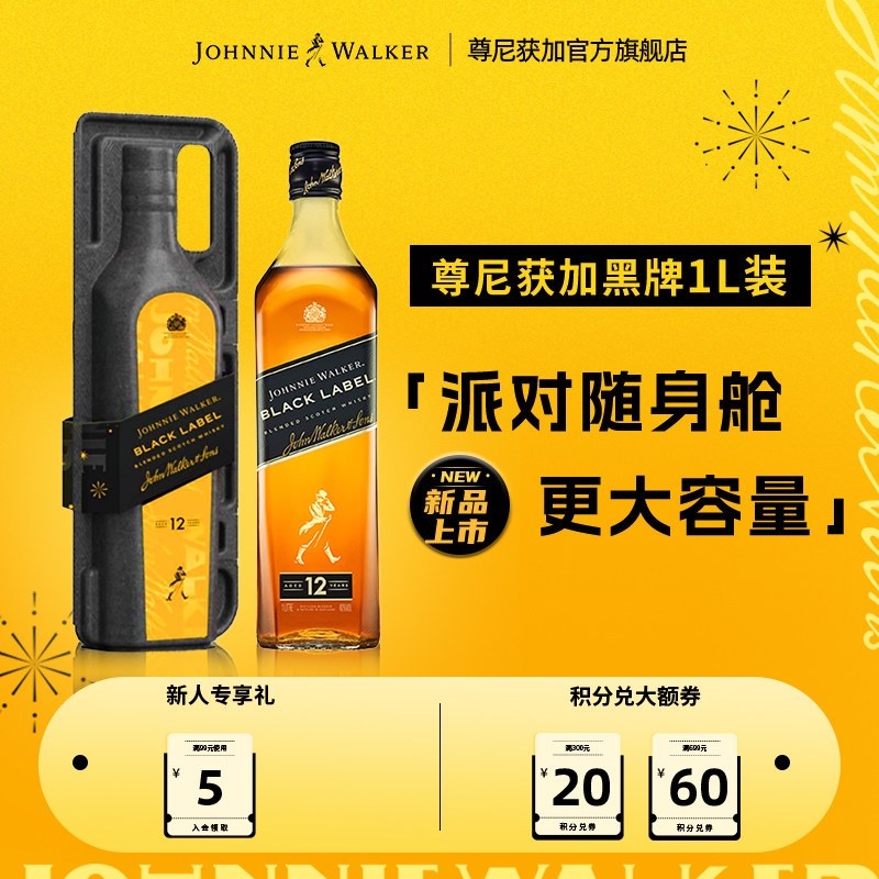 【官方旗舰店】尊尼获加黑牌黑方苏格兰威士忌酒1000ML无盒