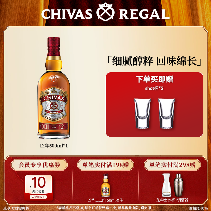 Chivas芝华士12年500ml特醇威士忌酒英国苏格兰进口洋酒调酒烈酒