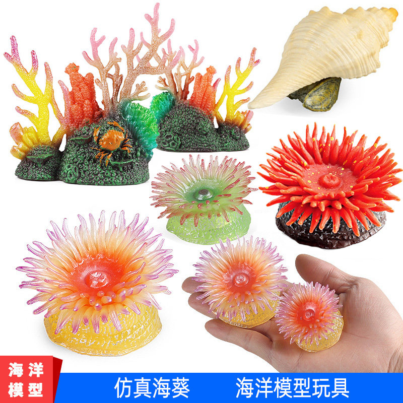 儿童仿真海洋海底动物玩具模型摆件海葵珊瑚章鱼海螺水母乌贼海蜇