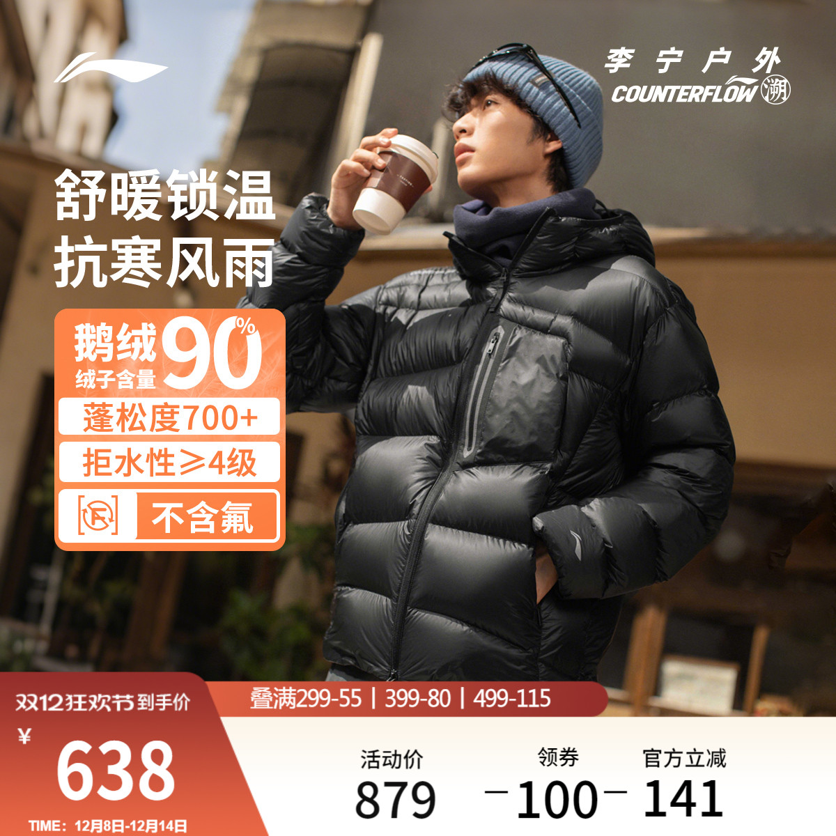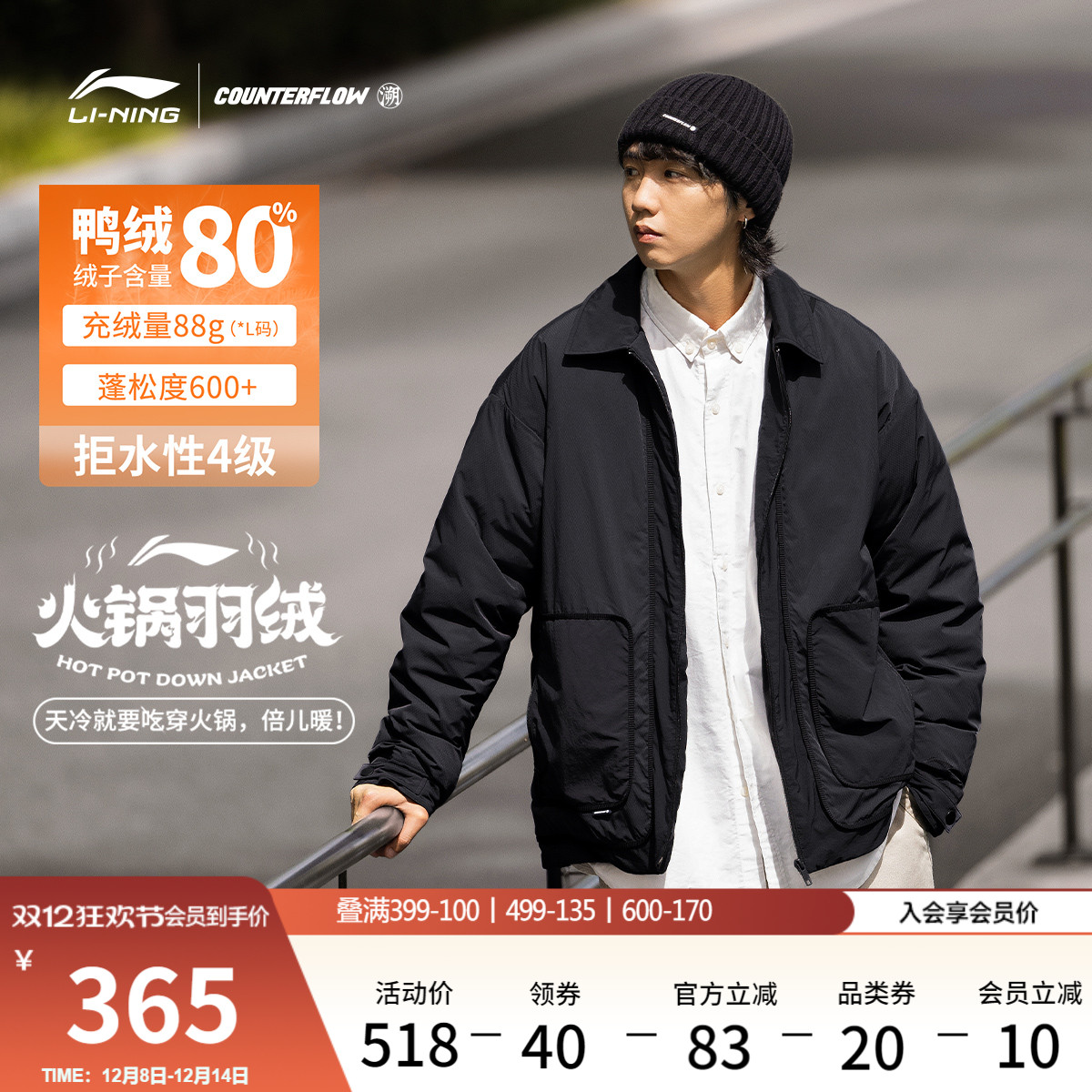 李宁火锅羽绒服丨男士冬季新款保暖衣服连帽户外上衣鸭绒运动外套