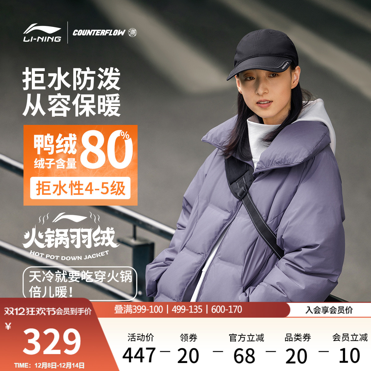 李宁火锅羽绒服丨女冬季鸭绒长款上衣保暖户外衣服连帽运动外套女