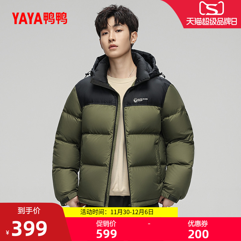 鸭鸭运动户外风90鸭绒600高蓬短款经典拼色面包羽绒服25秋冬新款