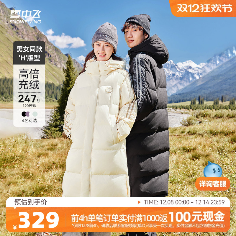 雪中飞秋冬大被子高峰滑雪冬新户外高充绒长男女羽绒服学院运动A