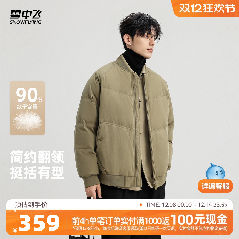 雪中飞2025冬新款男士棒球领简约卡其色羽绒服短款户外运动保暖