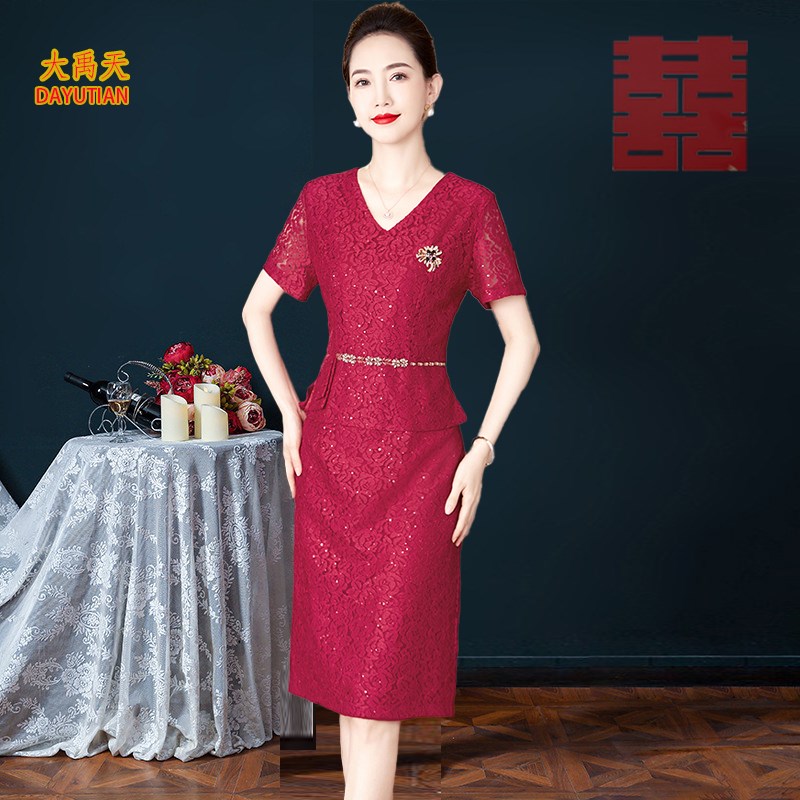 速发喜婆婆婚宴装服尚喜气连衣裙洋时妈妈装婚礼服参加儿结婚旗袍