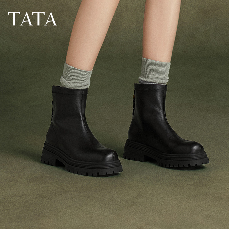 Tata他她靴子经典英伦风复古加绒马丁靴厚底女靴真皮短靴WUY02DZ4