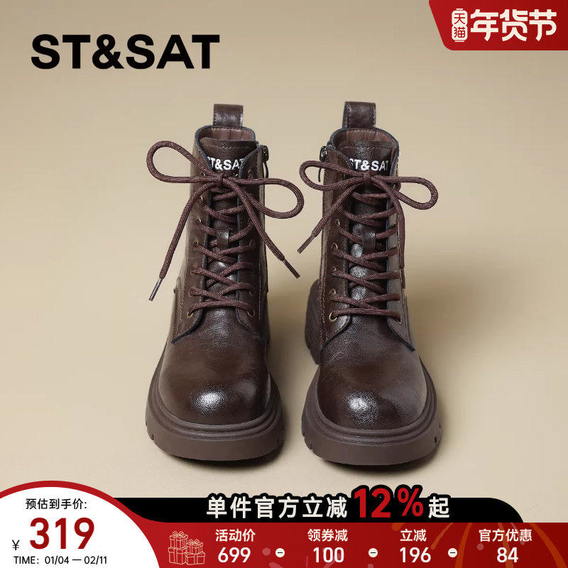 星期六真皮厚底马丁靴女靴2025秋冬新款百搭英伦风厚底增高短靴子