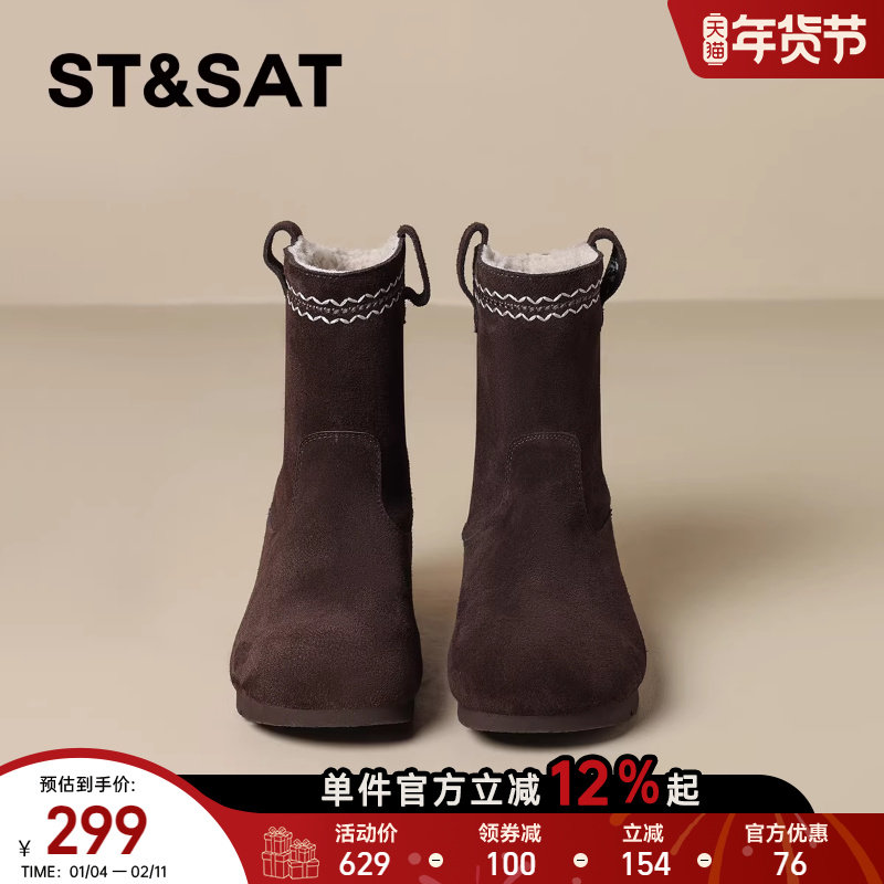 星期六真皮加绒雪地靴女靴子2025新款冬季复古厚底棉鞋短靴堆堆靴