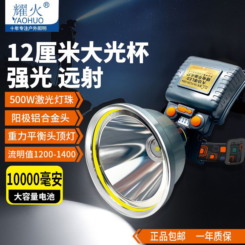 爆亮耀火头灯大光杯大光斑钓鱼灯 重力平衡头顶灯激光炮LED手电筒