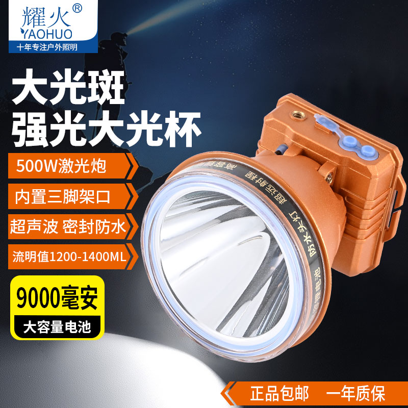 超亮耀火头灯密封防水防爆LED钓鱼灯 户外激光炮手电筒赶海照明灯
