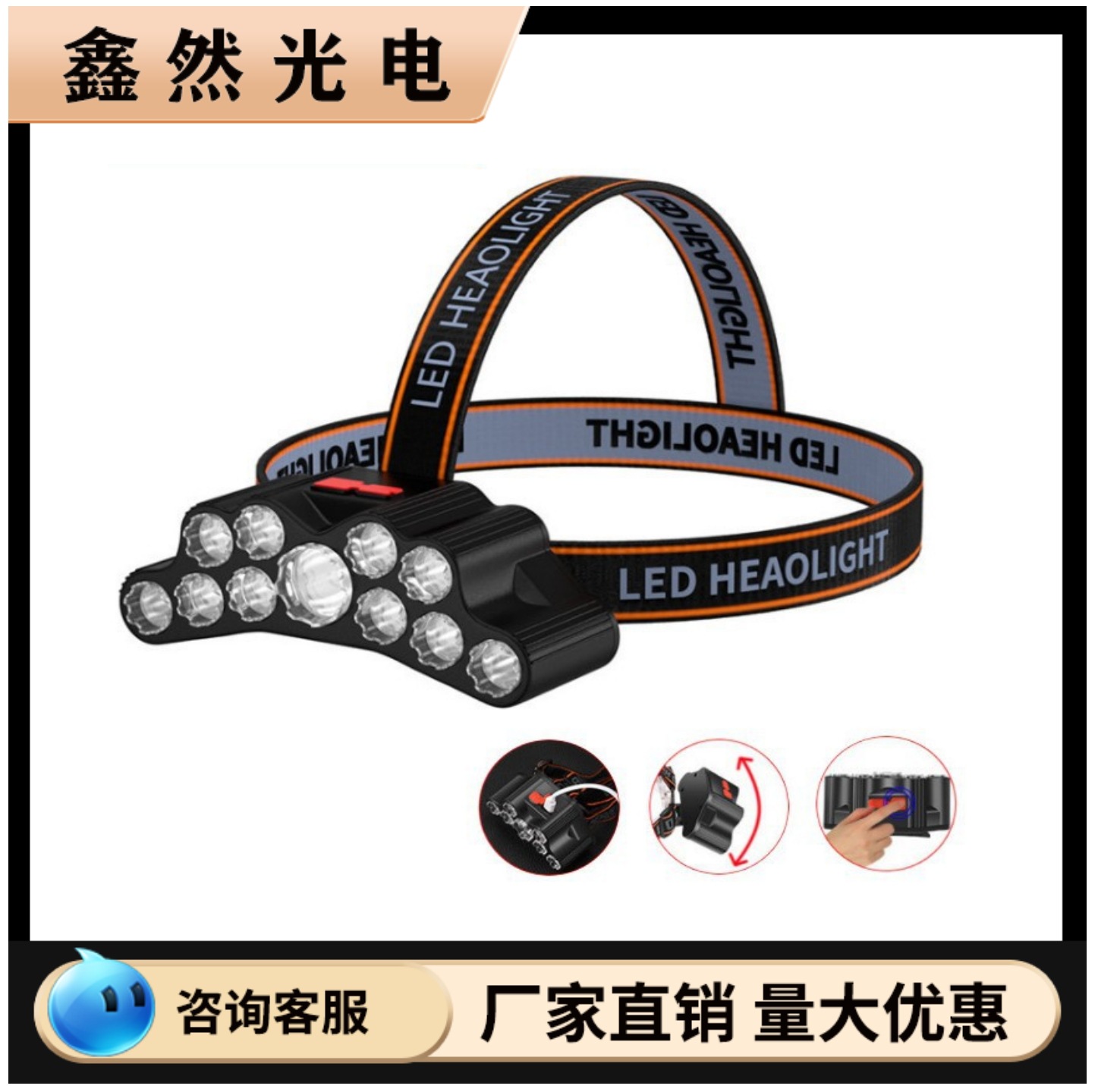 跨境户外USB充电强光11LED头灯夜跑骑行头戴式电筒多功能便携头灯