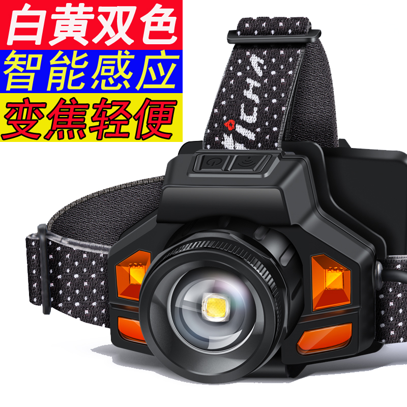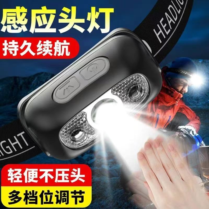 感应头灯led夜钓鱼灯强光长续航轻便钓鱼灯防水可充电超亮头戴式