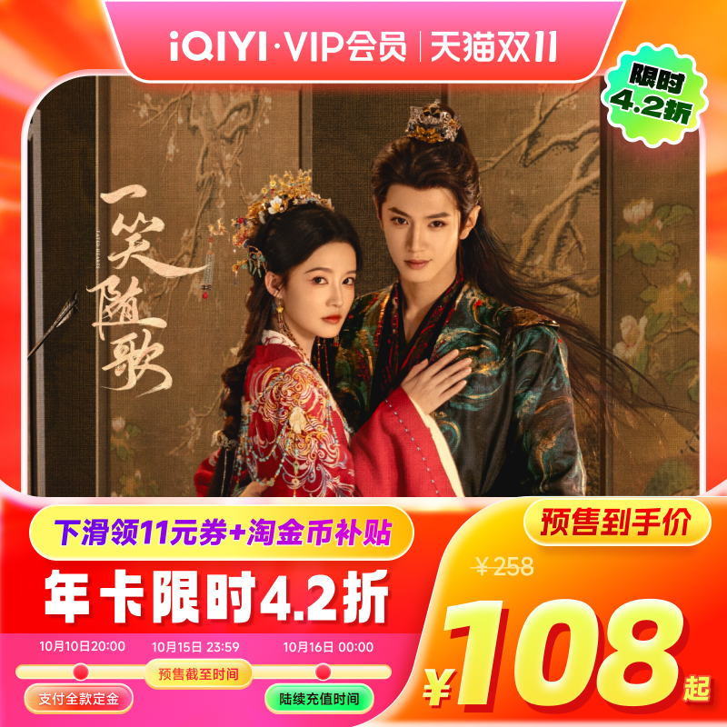 【下拉享补贴价】爱奇艺白金vip会员360天 爱奇艺vip一笑随歌